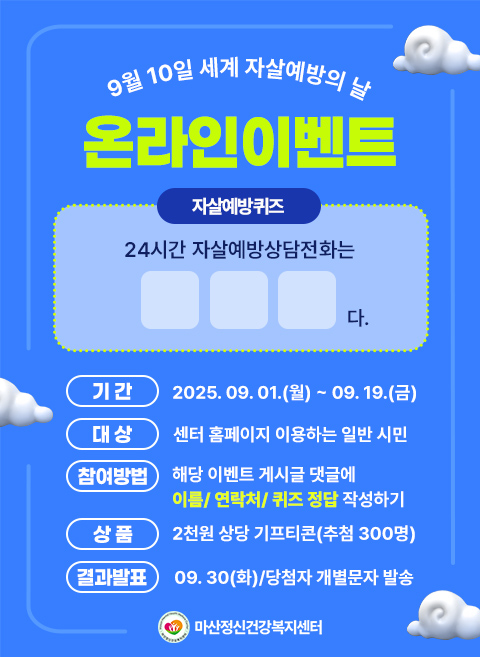 [마감]2025년 세계 자살예방의 날 이벤트 '자살예방퀴즈'